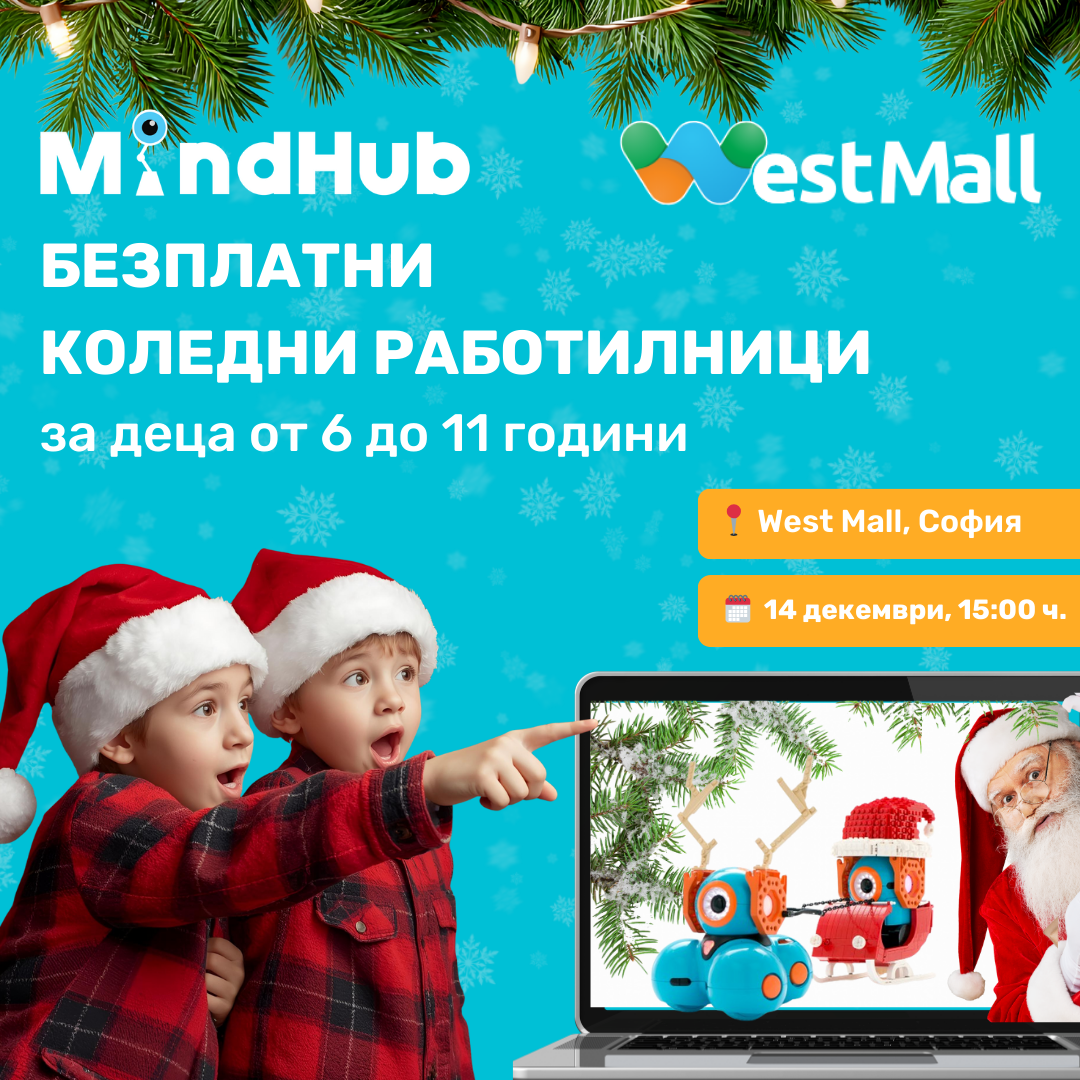 По време на тази работилница начинаещите деца от 9 до 11 години ще създадат своя дигитална коледна картичка средата за програмиране Hopscotch. Всички коледни картички, които бъдат успешно завършени от участниците ще бъдат включени в томбола за ГОЛЯМАТА НАГРАДА - Първо място печели РОБОТ за програмиране и Второ място - безплатен месец обучение в курсовете на MindHub.